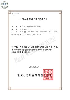 NICE 평가정보(주) 2022년 기술평가 우수기업 인증 (T-5등급)