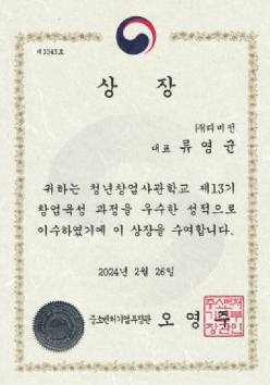 2024년 중기부 장관 표창 (제13기 청창사 우수졸업)